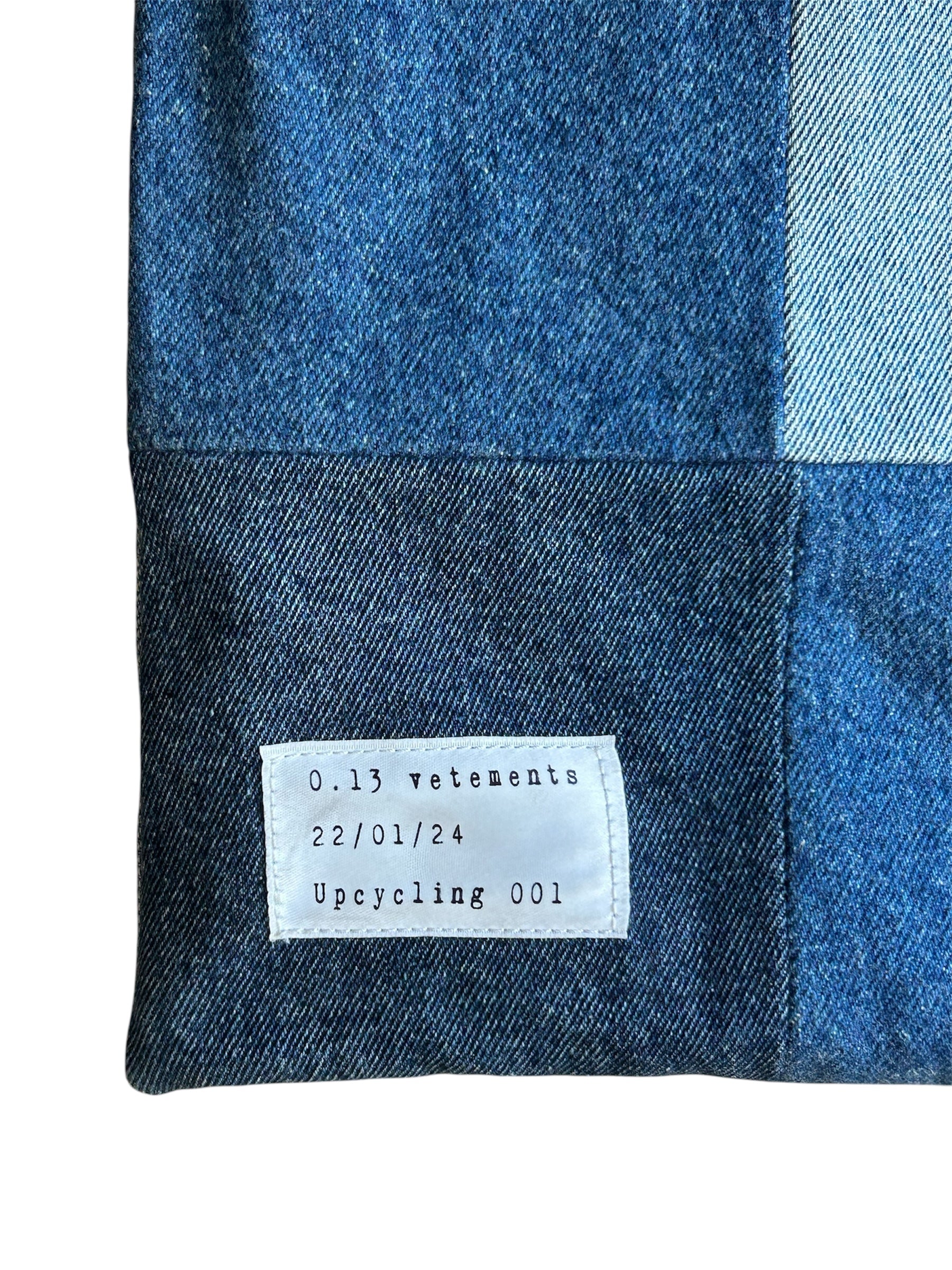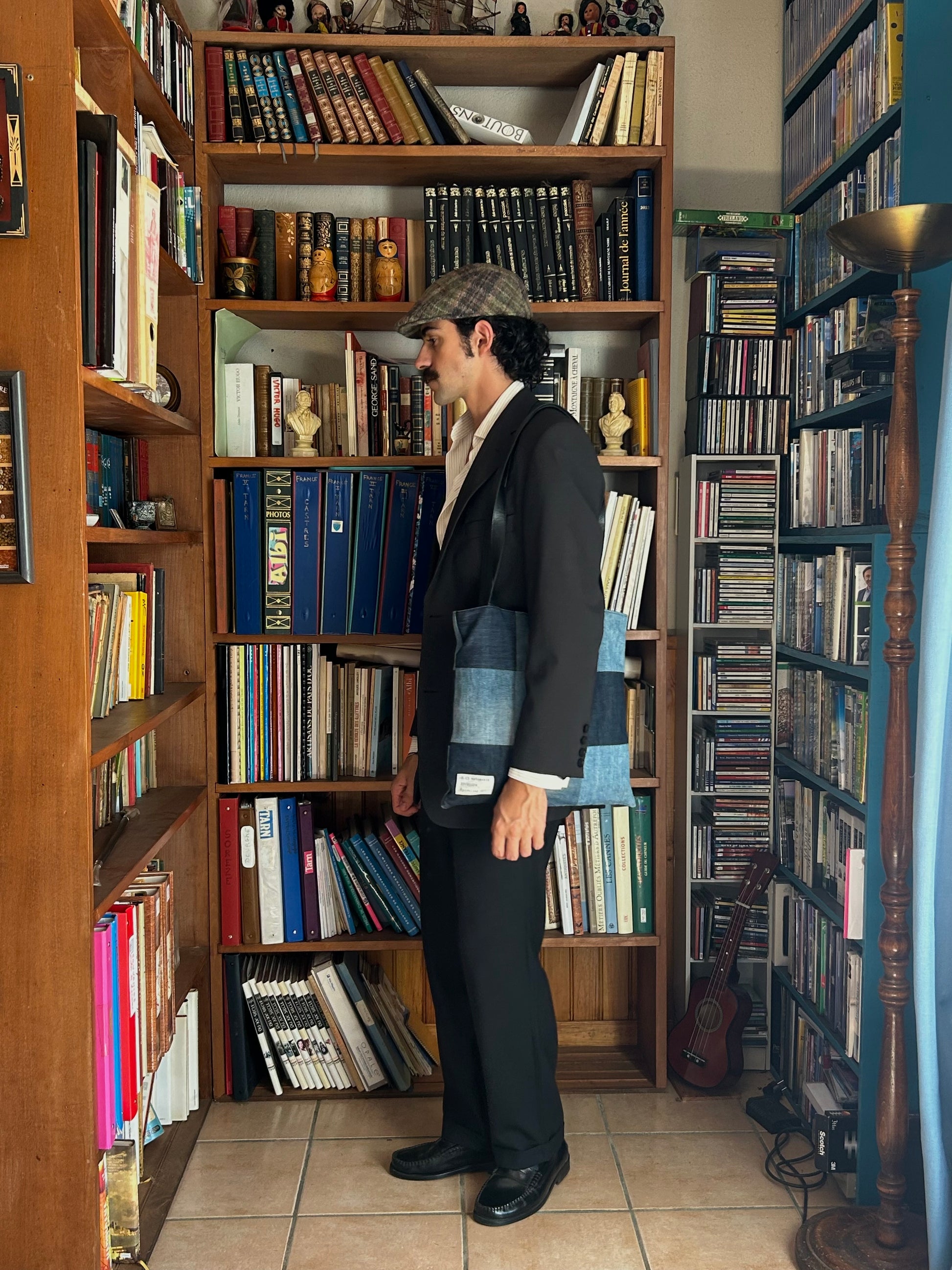Pièce après pièce, nous avons réassemblé des carrés de denim récupérés pour donner naissance au vagabond. Chaque sac porte des nuances d’indigo différentes, des traces de vie discrètes, et notre étiquette signature cousue en bas. Les anses en simili cuir apportent la structure, les poches intérieures sont taillées dans de vrais jeans, pratique et solide.